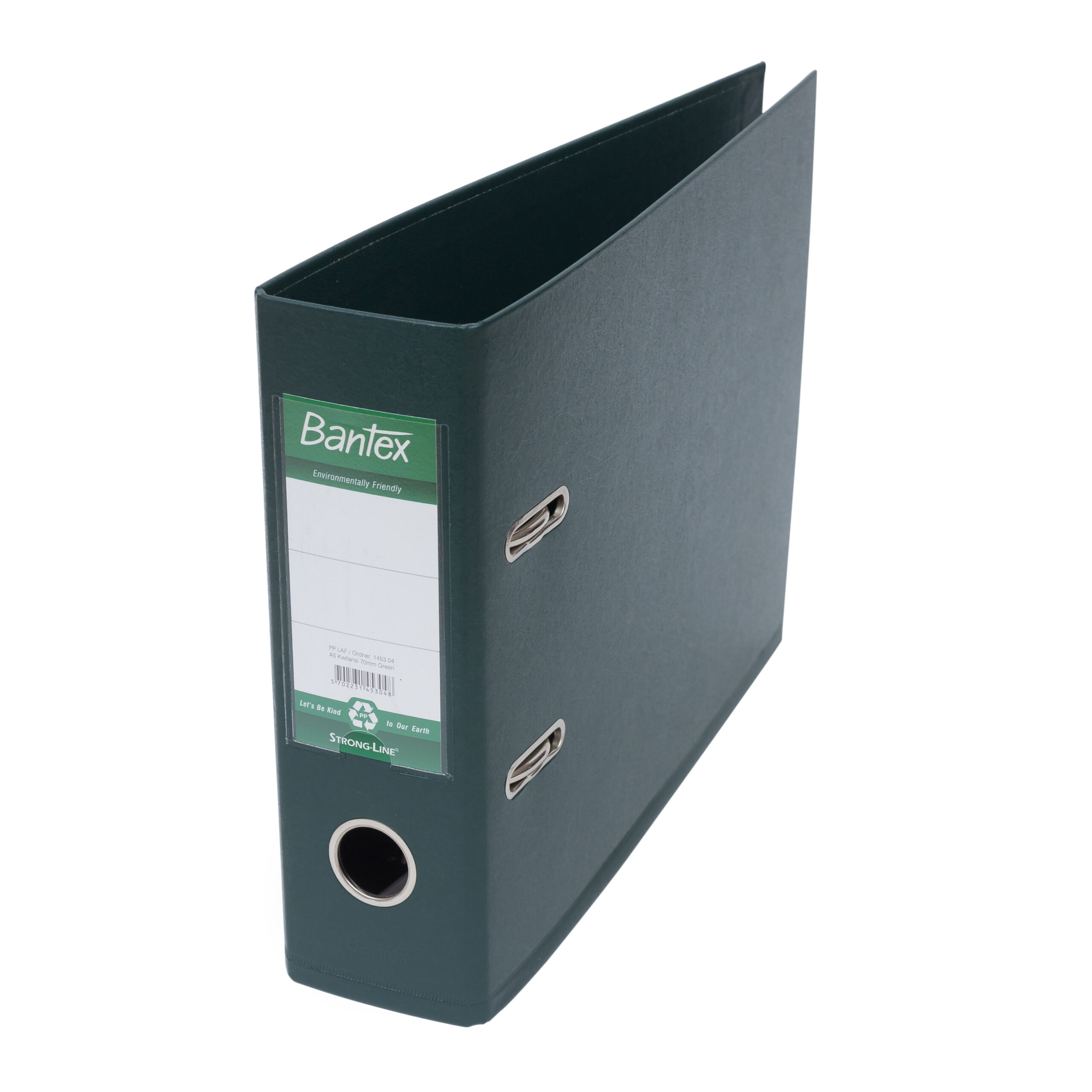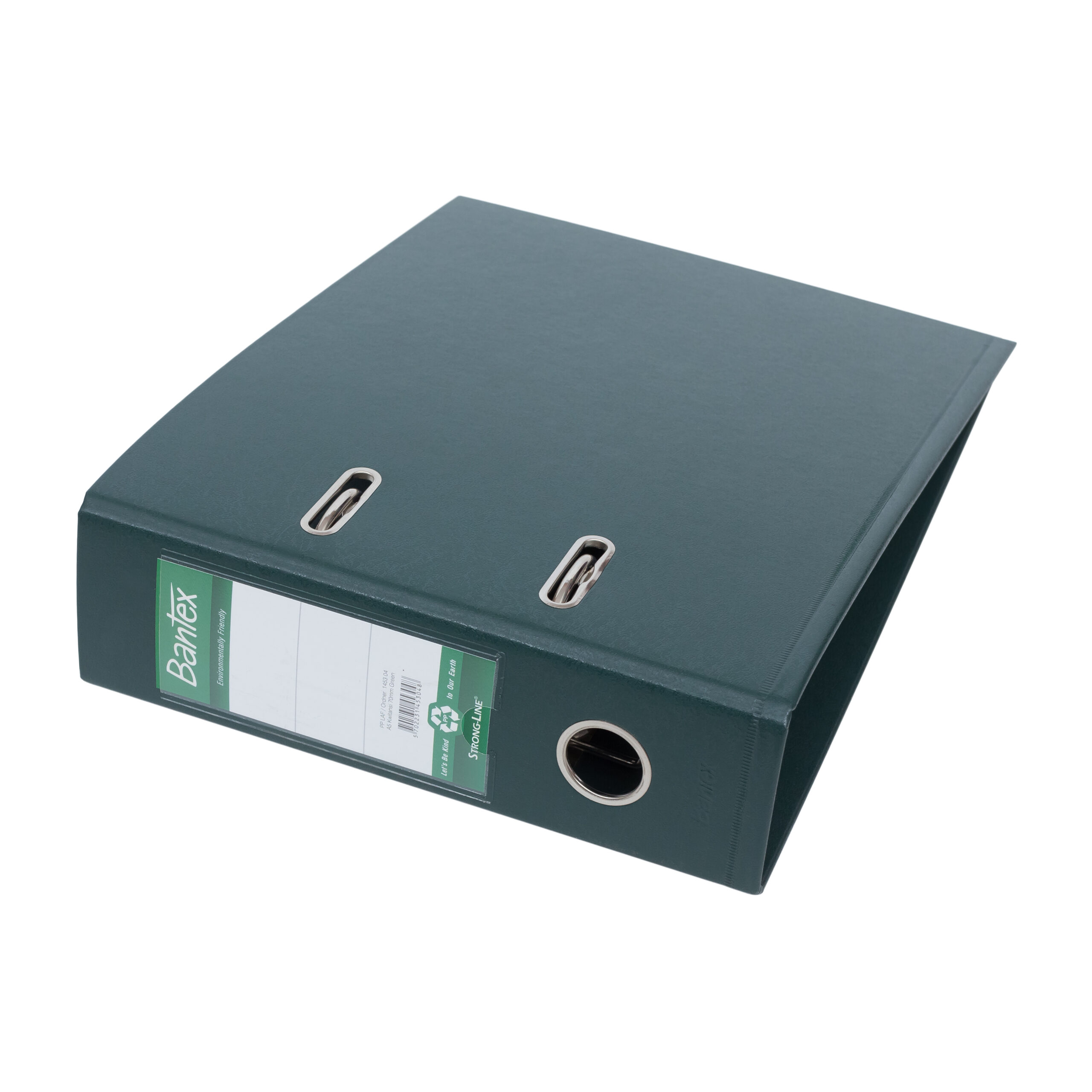 Ordner ECO Bantex terbuat dari lapisan luar bahan PP yang ramah lingkungan dan lining PP di dalam. Greyboard yang digunakan merupakan bahan daur ulang. Dilengkapi sistem Rado, membuat ordner dapat berdiri kokoh dalam lemari. Terdapat lubang untuk memudahkan pengambilan dan label punggung yang dapat diganti sesuai kebutuhan.