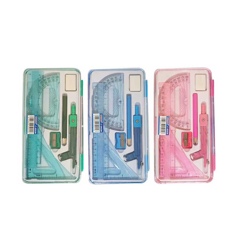 Isi: 1 Unit Jangka, Pensil Kayu, Rautan Pensil, Penghapus, dan 4 Penggaris Geometrical